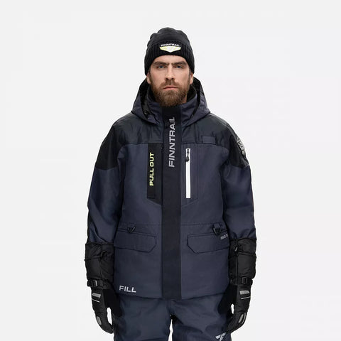 The unique F.I.L.L. system helps maintain buoyancy on water, with a one-layer film in the jacket and a film layer in the waist area of the pants. This system creates an air vacuum between the body and the outer layer of clothing. The suit also has two webbing grab straps for easy rescue access.