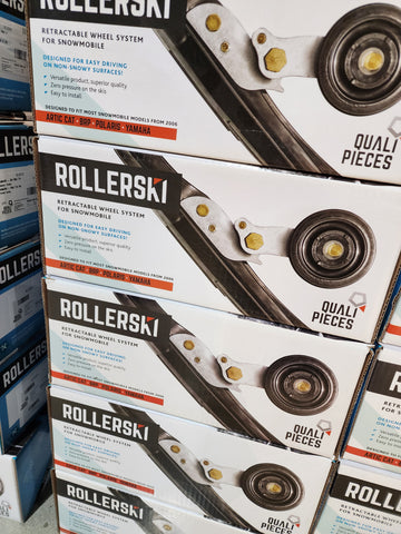 When riding your snowmobile, you don't want interruptions. The Qualipieces RollerSkiTM gives you that chance. The wheels retract...automatically! In fact, all that's needed is a few seconds of light pressure with your foot and the wheels are deployed. As soon as they come in contact with snow, they retract automatically. It's that simple!